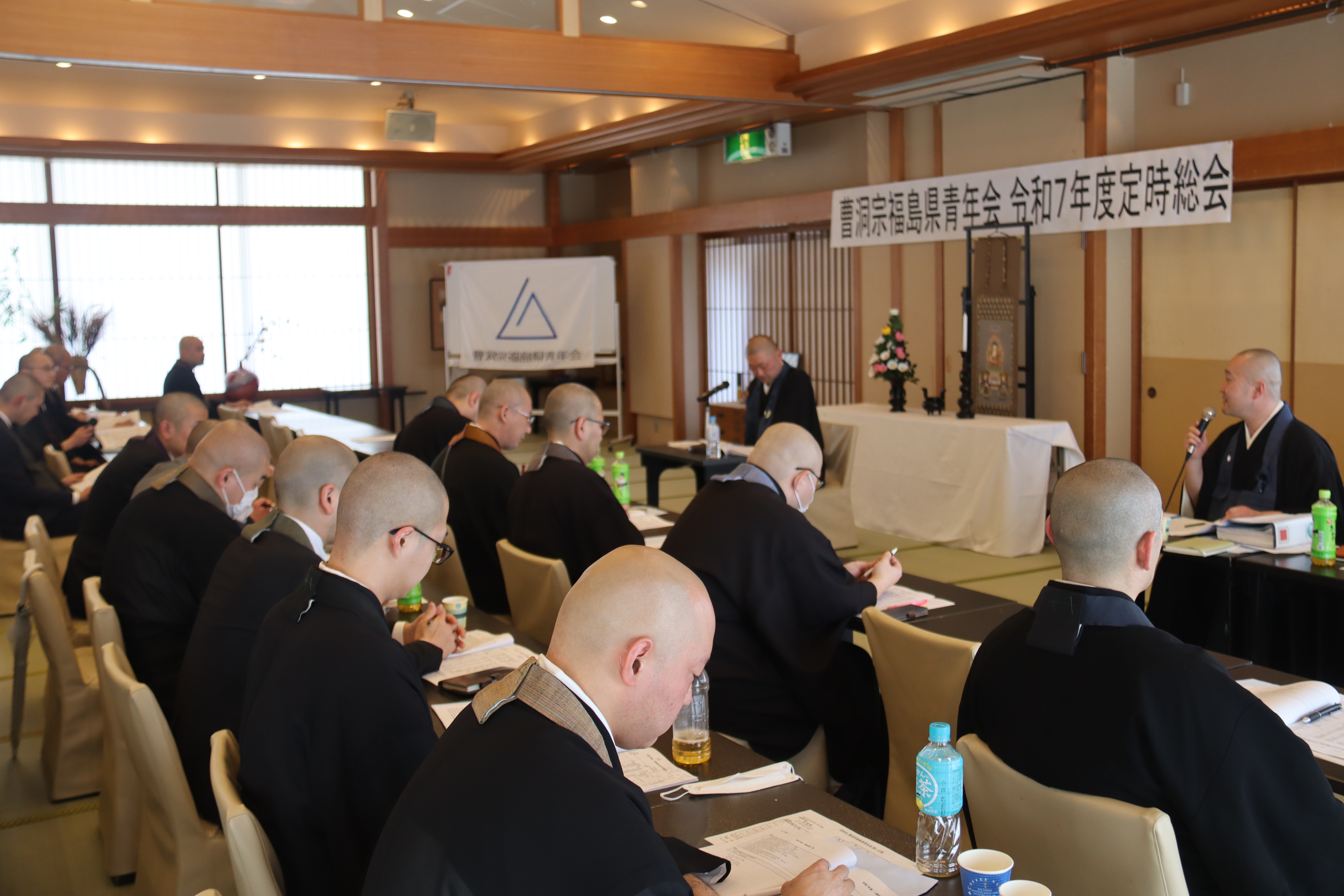 総会では会員諸師とともに仏祖諷経を勤め、会長挨拶に続き、令和6年度事業及び決算報告、令和7年度事業計画案及び予算案などが上程され、すべての議案が承認可決されました。