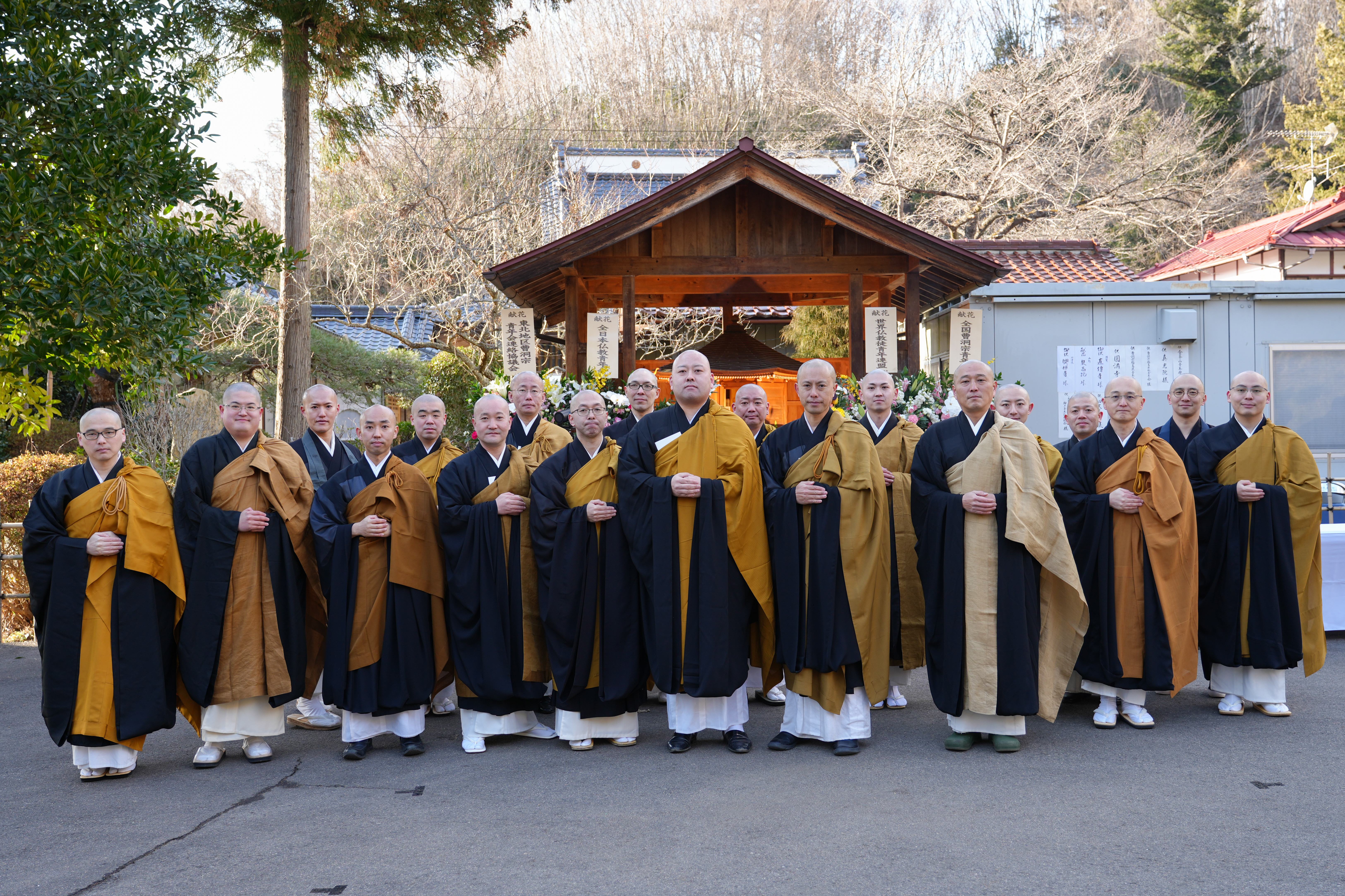 令和8年3月10日、福島県伊達市成林寺納経塔での全日本仏教青年会・全国曹洞宗青年会・世界仏教徒青年連盟 共催「令和7年度 東日本大震災慰霊復興祈願法要」に曹洞宗福島県青年会会員12名が随喜し、慰霊と被災地復興の祈りを捧げてまいりました。